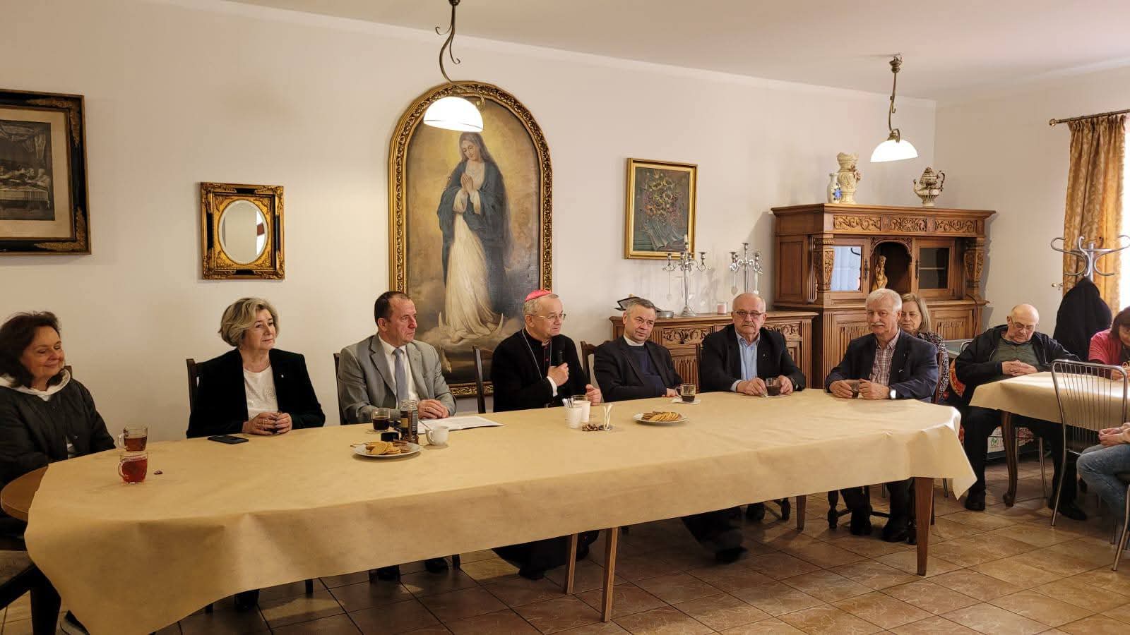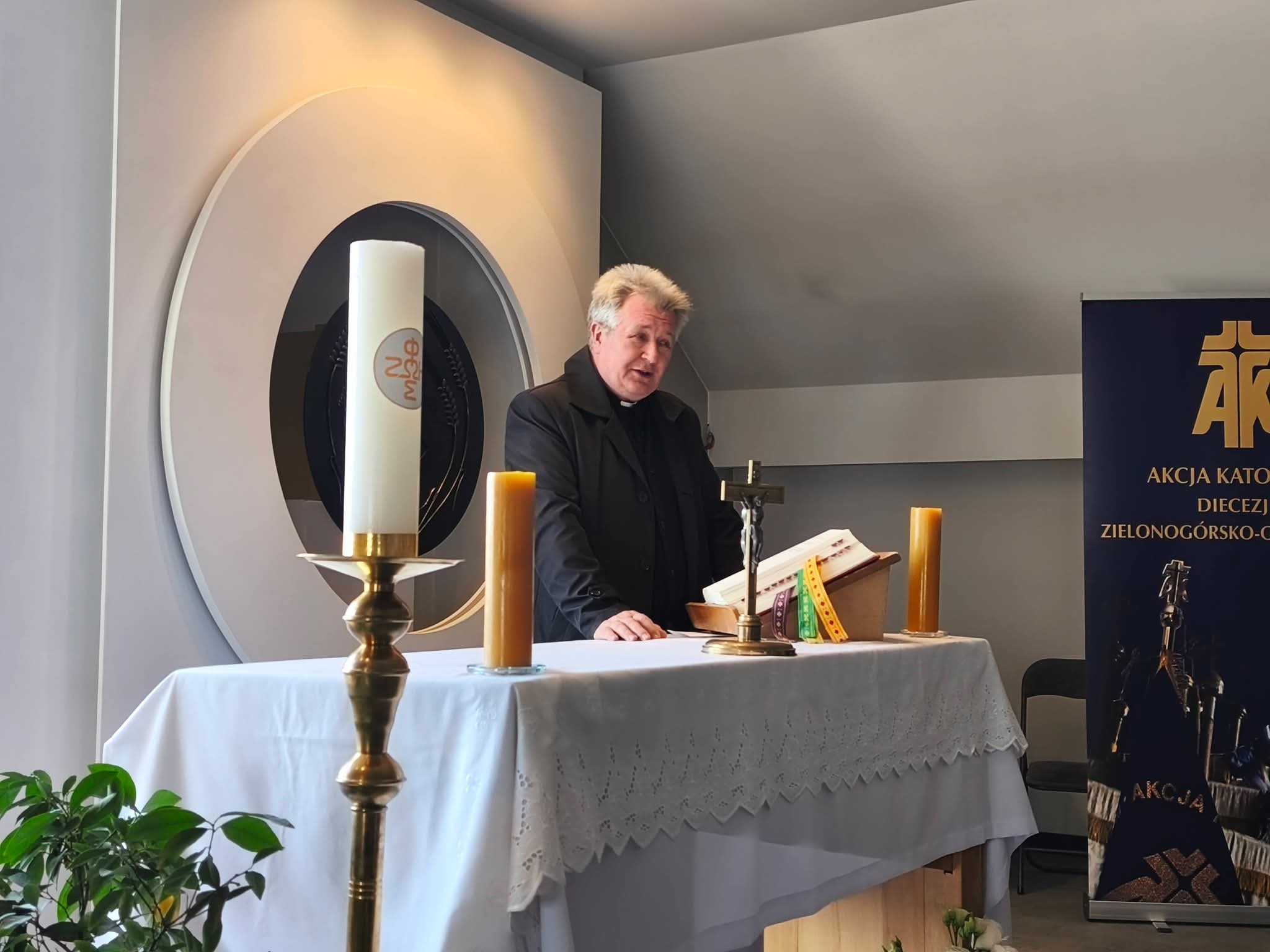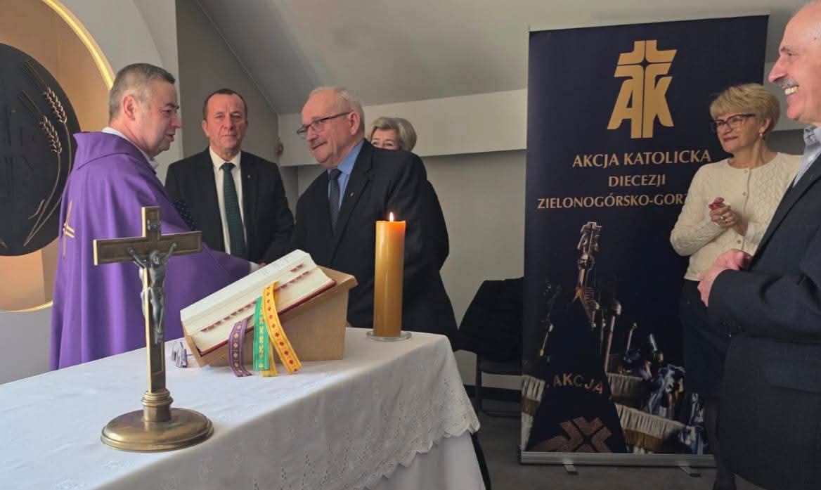 W dniach 20-22 marca 2026 r., odbyły się diecezjalne rekolekcje wielkopostne Akcji Katolickiej. Formacja przeżywana w Sanktuarium Matki Bożej Rokitniańskiej, pozwoliła odnowić nasze zawierzenie Matce Bożej, na wzór naszego Św. Patrona Jana Pawła II. Tegoroczne rekolekcje z tematem przewodnim ,,Uczeń Chrystusa misjonarzem na pustyni kulturowej świata” poprowadził ks. prof. dr hab. Wiesław Przygoda, Dyrektor Instytutu Nauk Teologicznych Katolickiego Uniwersytetu Lubelskiego im. Jana Pawła II w Lublinie. Zgłębialiśmy go podczas kolejnych konferencji, homilii, rozważań i nabożeństw. Od ukazania min. wpływu mediów na stan wiary, która potrafi być w nich niezwykle piętnowana, po zmieszanie człowieka z bezduszną sztuczną inteligencją. Jak bardzo Kościół ma być misyjny przekazał już na początku swojego pontyfikatu papież Leon XIV. Formacja świeckich ma się odbywać w perspektywie Świętości. Mamy obowiązek dawać świadectwo, żyć tak „aby ludzie pytali cię o Boga”. Akcja Katolicka poprzez swoją elastyczność może wejść w różne zadania społeczne. Poprzez to wielkopostne zatrzymanie, staramy się na nowo usłyszane przed laty powołanie, odnowić do podjęcia z nowym duchem powierzonej nam świeckim misji w Kościele. W rekolekcjach wzięło udział 40 osób z dwunastu środowisk parafialnych naszej diecezji w tym: z Dobiegniewa, Witnicy, Świebodzina, Zbąszynka, Sulechowa, Wschowy, Gubina, Głogowa, Żagania i trzech POAK-ów z Zielonej Góry. W drugim dniu rekolekcji z jego uczestnikami spotkał się Biskup Diecezji Tadeusz Lityński, który wskazał by przy ogromnej polaryzacji społecznej, pomóc ponownie ludziom postawić w centrum swojego życia misterium Boga. Potrzeba w tym zakresie modlitwy ale też działań apostolskich, abyśmy byli jedno. To zadanie dotyczy także katolików świeckich – podkreślał biskup. Podczas sobotniego wieczornego spotkania integracyjnego przekazano wiele bieżących informacji dotyczycących wielu inicjatyw diecezjalnych i krajowych. Serdecznie dziękujemy wszystkim za wyjątkową atmosferę skupienia, wzajemnego umocnienia i ciepłych relacji. Ks. Asystentowi Zbigniewowi Samociakowi dziękujemy za pomoc i wszelką życzliwość zaś Ks. Profesorowi raz jeszcze za przekazane Słowo, trud głoszenia i pokonanej drogi. Powracamy z odświeżonym sercem by oczekiwać Świąt Zmartwychwstania Pańskiego.